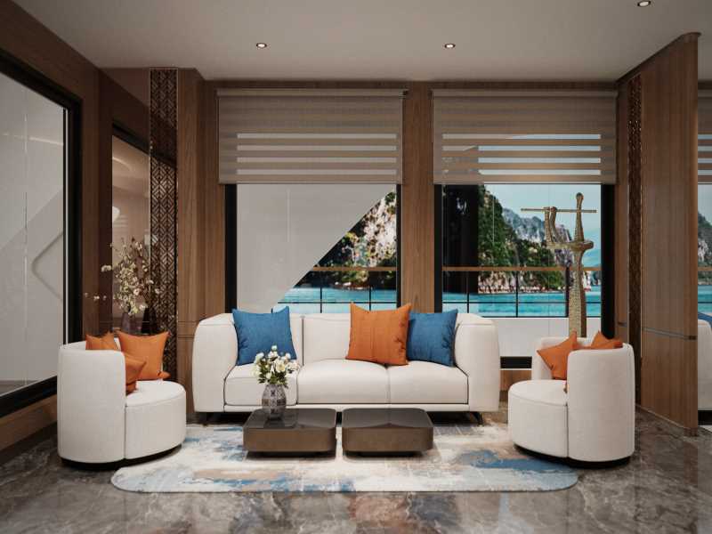 17:30 - 18:30: Sunset Party and Happy Hour is the ideal time to sip a cup of hot tea while watching the sunset on the bay or you can soak in the Jacuzzi on the sundeck, sunbathe and freely visit and take pictures. In particular, guests have the opportunity to participate in the Happy Hour program “Buy 2 drinks, get 1 drink free” at the bar.