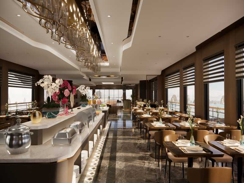 07:00: Enjoy breakfast with a menu including: sandwiches, pastries, eggs, ham, sausage…. fulfill the energy to be ready to discover the Cat ba island – Lan Ha bay.