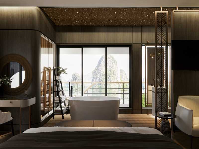 20:45: After finishing dinner, you can enjoy the landscape of the bay at night up on the top deck, relax with romantic ballad music, enjoy drinks from the bar try your luck at squid fishing, watch a movie, enjoy Spa treatment, relax in your room. Overnight on board.