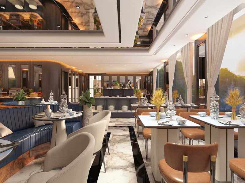 - Luxury cabins with AC, private balcony, sea view window, shower and bathtub