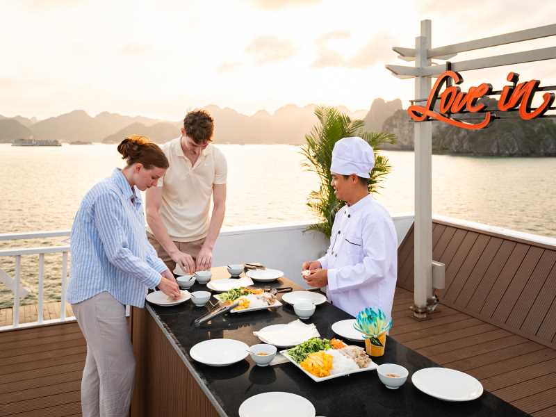 Enjoy wine and fresh fruits while taking part in the cooking demonstration. Our chef will show how to make Vietnamese fresh spring rolls, and you will have the chance to taste the dish you prepared yourself.