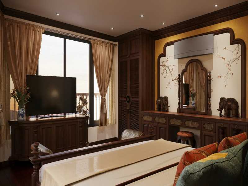 17h00 - 18h00 Guests are inviting to use free-of-charge the traditional Vietnamese long dress (Áo cổ phục) to take experience & capturing the heritage bay view for