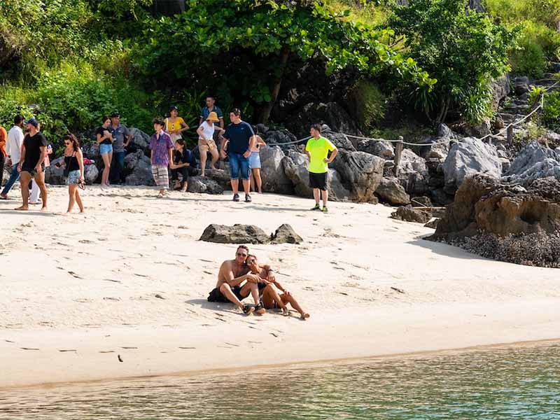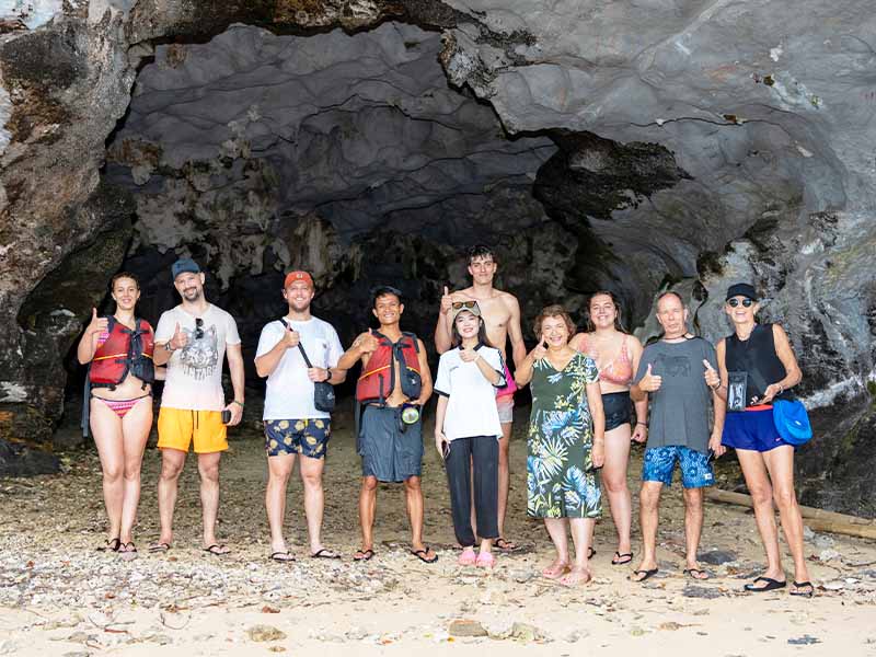 10.45 Arrive at Hang Thay area, enjoy kayaking, swimming, sunbathing on natural beaches, and visit the cave