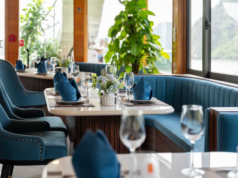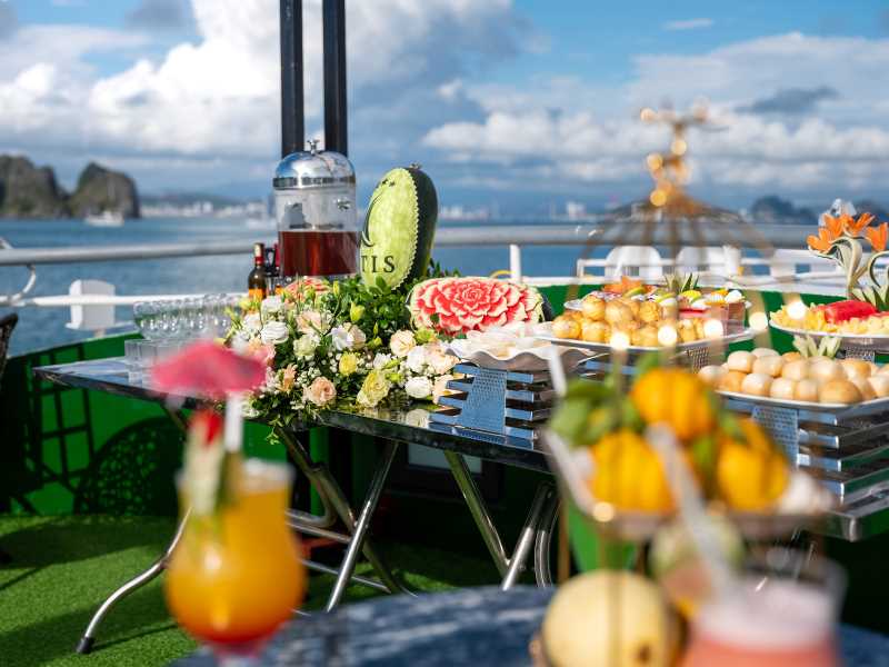 Begin cruising and enjoy a special lunch featuring many traditional Vietnamese dishes and fresh, famous seafood dishes of Quang Ninh province as the cruise gently glides on the romantic waves of the sea.
